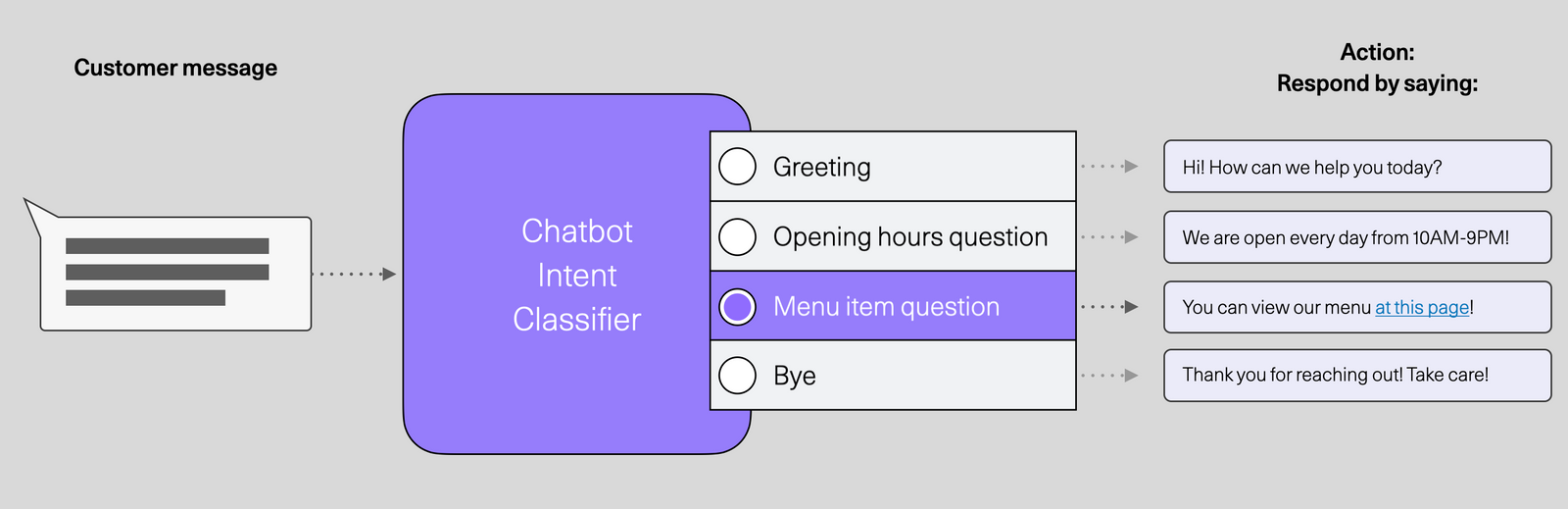 Chatbots tend to pair intent classifiers with entity extractors – another language processing functionality to extract the “breakfast special” from a menu item question so the system knows exactly which item the user is asking about.
