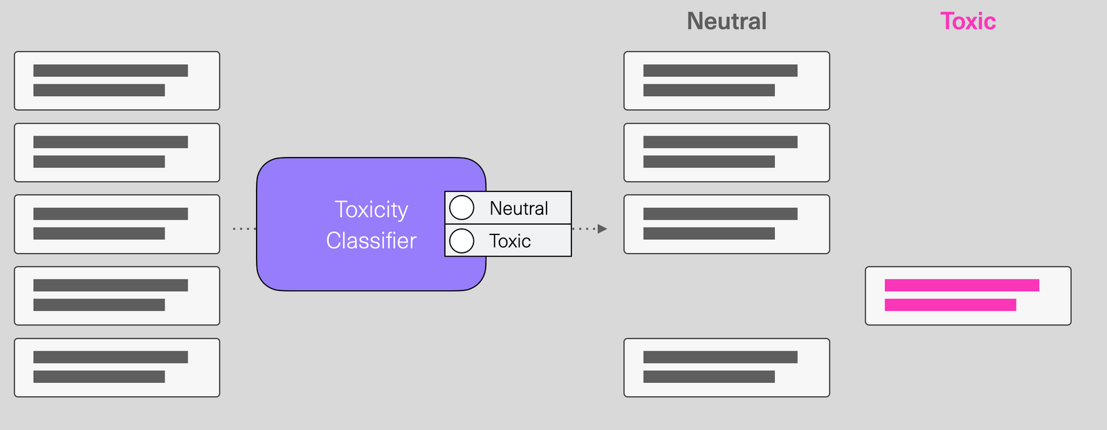 In “Content Moderation with Classify”, we show how you can build such a classifier with the Cohere Classify endpoint. It’s also possible to finetune a model on your labeled data so the classifier can specialize to solve this problem, which you can read about here.