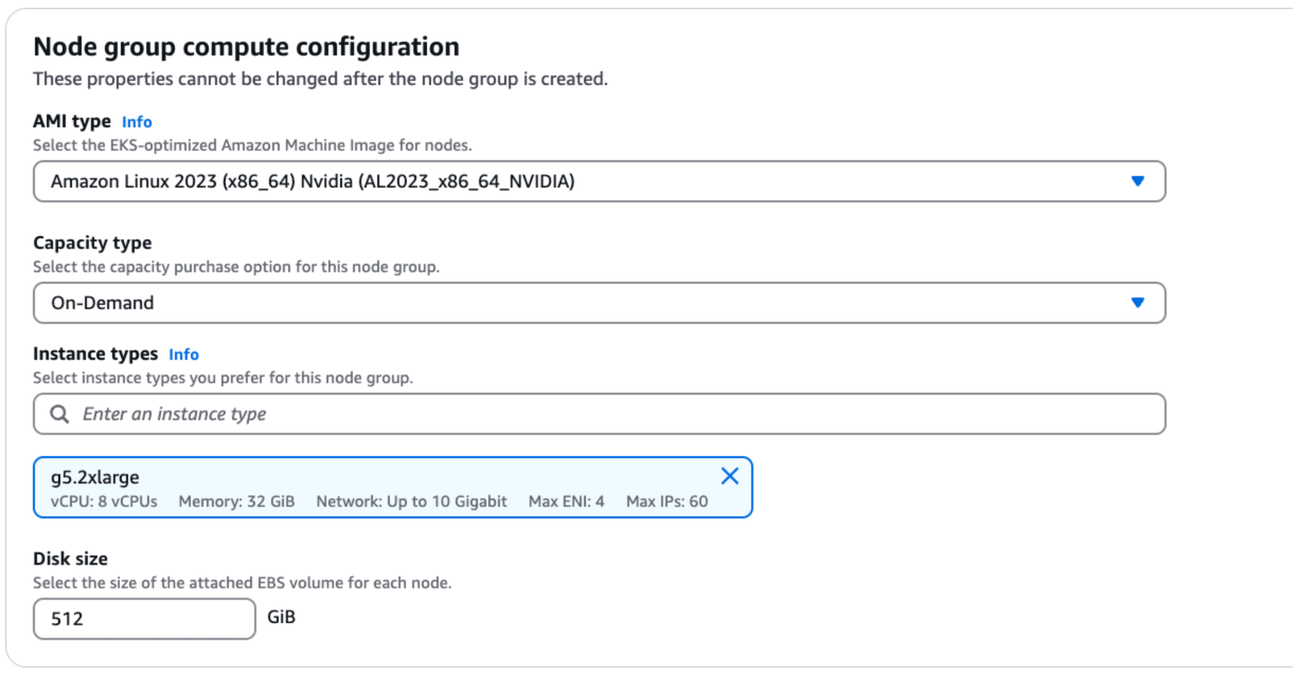 - AMI type - Amazon Linux 2023 - Nvidia (nvidia drivers pre-installed)