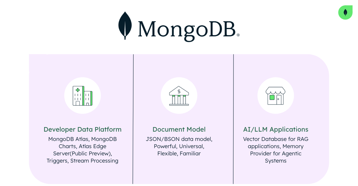 MongoDB acts as both an operational and a vector database for the RAG system. MongoDB Atlas specifically provides a database solution that efficiently stores, queries and retrieves vector embeddings.